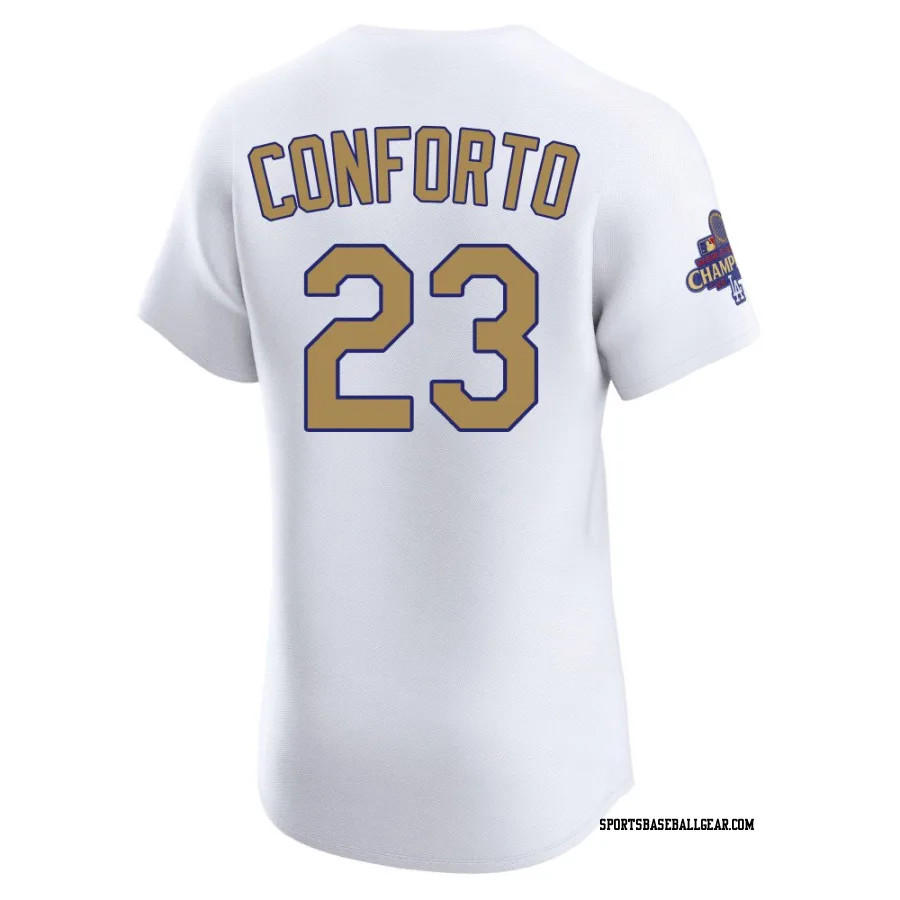 Get the Michael Conforto Men's Los Angeles Dodgers Gold Elite White 2025 Collection Jersey, showcasing the latest design and premium quality for dedicated fans. Elevate your baseball wardrobe now!