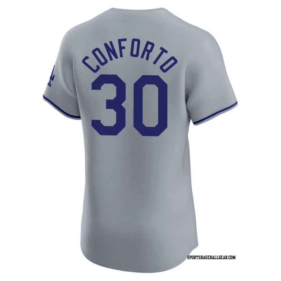 Get the Michael Conforto Men's Los Angeles Dodgers Gray Elite Road 2024 World Series Jersey, showcasing the latest design and premium quality for dedicated fans. Elevate your baseball wardrobe now!
