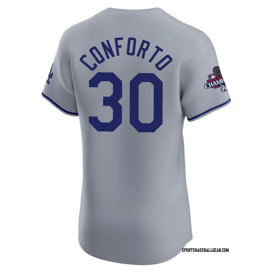 Get the Michael Conforto Men's Los Angeles Dodgers Gray Elite Road World Series Champions Jersey, showcasing the latest design and premium quality for dedicated fans. Elevate your baseball wardrobe now!