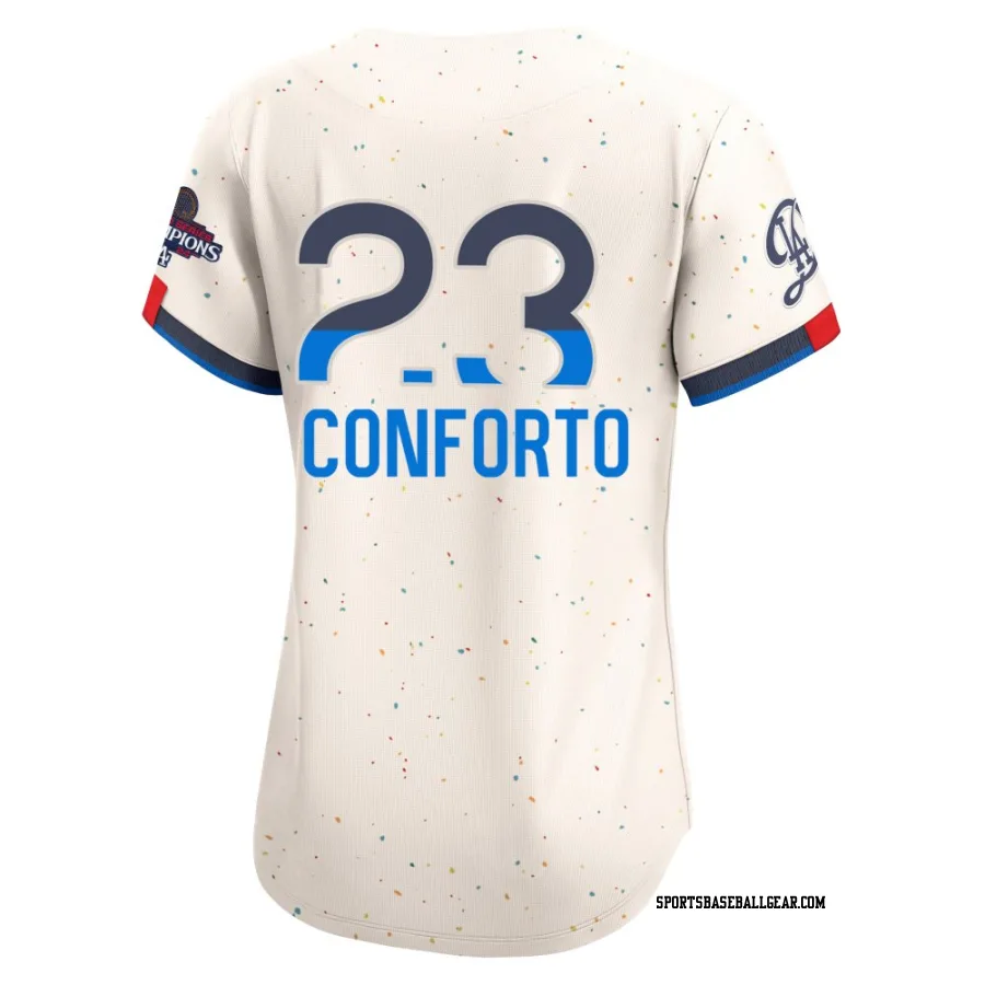 Get the Michael Conforto Women's Los Angeles Dodgers Cream Limited 2024 City Connect World Series Champions Jersey, showcasing the latest design and premium quality for dedicated fans. Elevate your baseball wardrobe now!