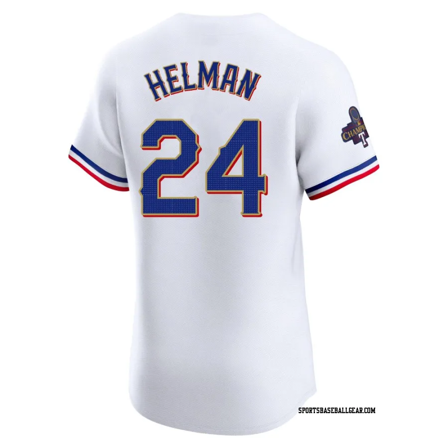 Get the Michael Helman Men's Texas Rangers Gold Elite White 2024 Collection Jersey, showcasing the latest design and premium quality for dedicated fans. Elevate your baseball wardrobe now!