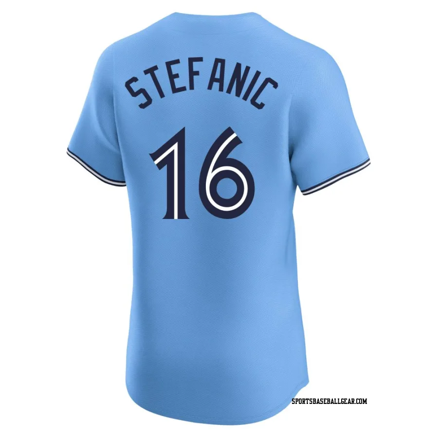 Get the Michael Stefanic Men's Toronto Blue Jays Blue Elite Powder Alternate Jersey, showcasing the latest design and premium quality for dedicated fans. Elevate your baseball wardrobe now!