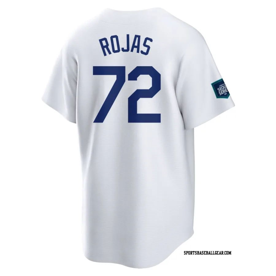 Get the Miguel Rojas Men's Los Angeles Dodgers White Replica 2024 World Tour Seoul Series Home Jersey, showcasing the latest design and premium quality for dedicated fans. Elevate your baseball wardrobe now!