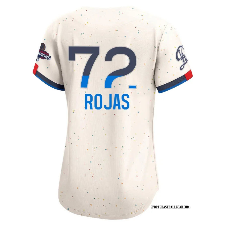 Get the Miguel Rojas Women's Los Angeles Dodgers Cream Limited 2024 City Connect World Series Champions Jersey, showcasing the latest design and premium quality for dedicated fans. Elevate your baseball wardrobe now!