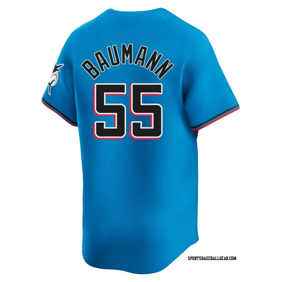 Get the Mike Baumann Men's Miami Marlins Blue Limited Alternate Jersey, showcasing the latest design and premium quality for dedicated fans. Elevate your baseball wardrobe now!