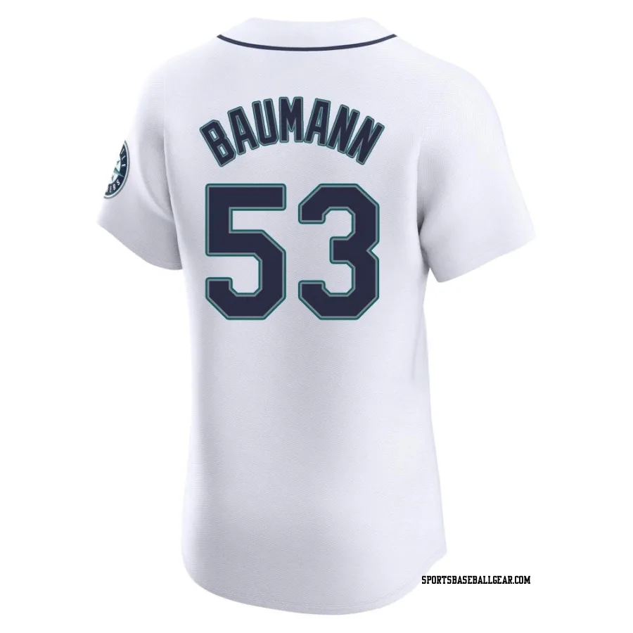 Get the Mike Baumann Men's Seattle Mariners White Elite Home Jersey, showcasing the latest design and premium quality for dedicated fans. Elevate your baseball wardrobe now!