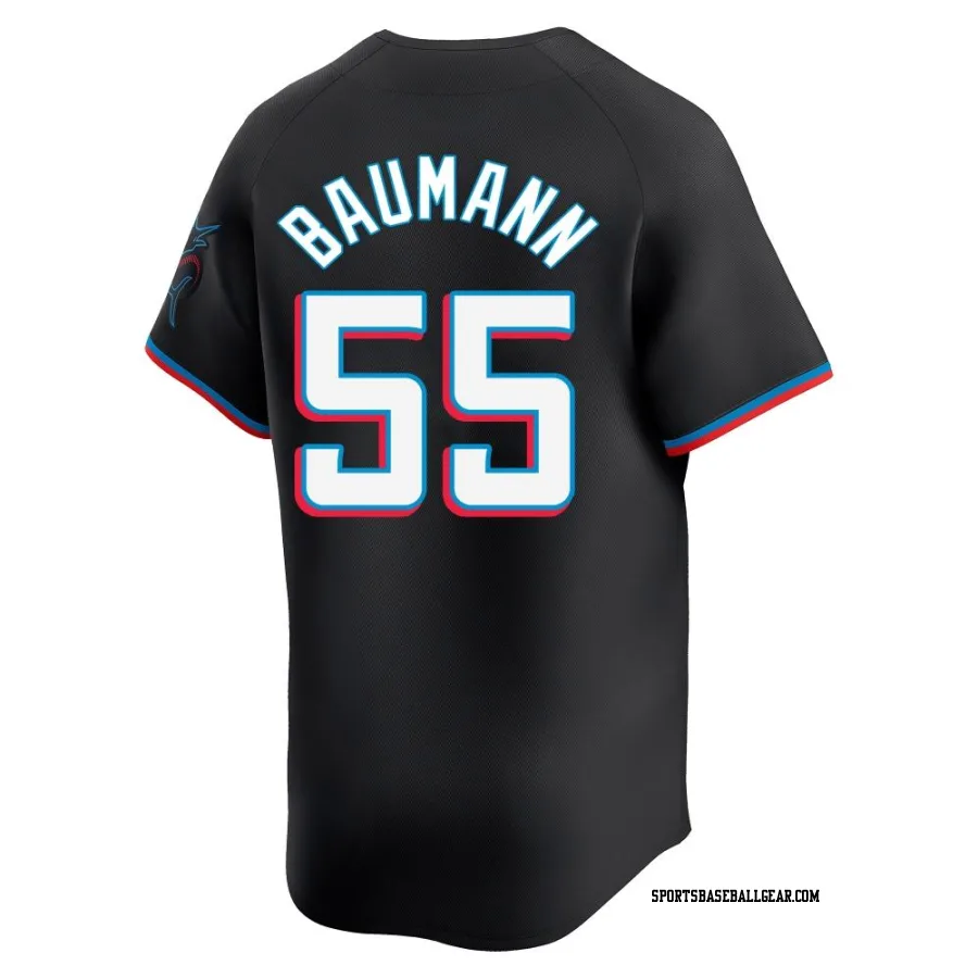 Get the Mike Baumann Youth Miami Marlins Black Limited Alternate Jersey, showcasing the latest design and premium quality for dedicated fans. Elevate your baseball wardrobe now!