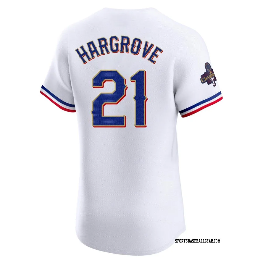 Get the Mike Hargrove Men's Texas Rangers Gold Elite White 2024 Collection Jersey, showcasing the latest design and premium quality for dedicated fans. Elevate your baseball wardrobe now!
