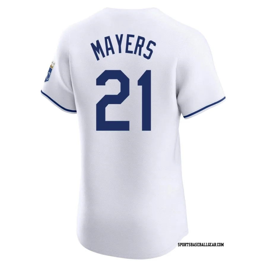 Get the Mike Mayers Men's Kansas City Royals White Elite Home Jersey, showcasing the latest design and premium quality for dedicated fans. Elevate your baseball wardrobe now!