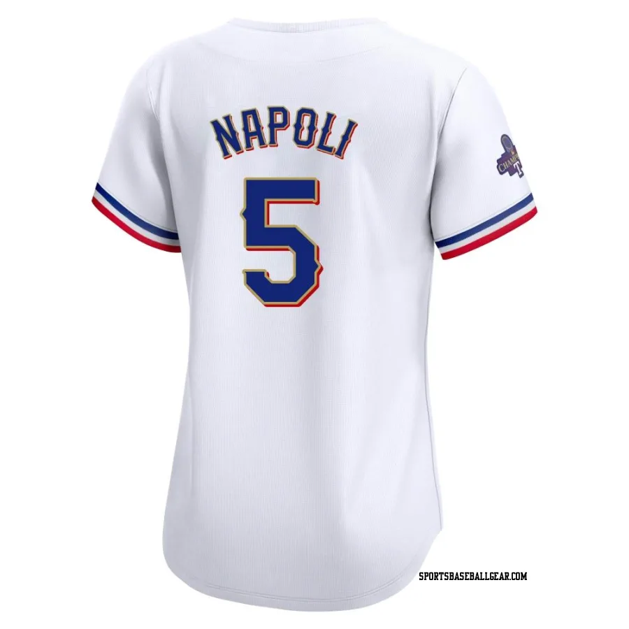 Get the Mike Napoli Women's Texas Rangers Gold Limited White 2024 Collection Jersey, showcasing the latest design and premium quality for dedicated fans. Elevate your baseball wardrobe now!