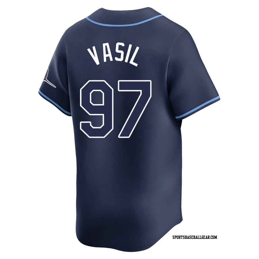 Get the Mike Vasil Men's Tampa Bay Rays Navy Limited Away Jersey, showcasing the latest design and premium quality for dedicated fans. Elevate your baseball wardrobe now!