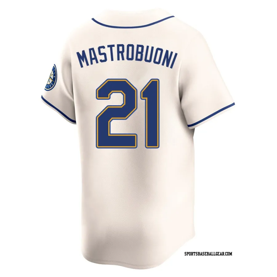 Get the Miles Mastrobuoni Men's Seattle Mariners Cream Limited Alternate Jersey, showcasing the latest design and premium quality for dedicated fans. Elevate your baseball wardrobe now!