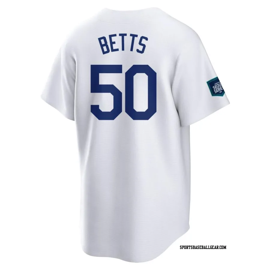 Get the Mookie Betts Men's Los Angeles Dodgers White Replica 2024 World Tour Seoul Series Home Jersey, showcasing the latest design and premium quality for dedicated fans. Elevate your baseball wardrobe now!
