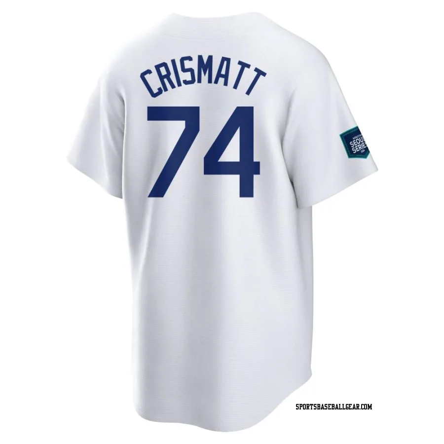 Get the Nabil Crismatt Men's Los Angeles Dodgers White Replica 2024 World Tour Seoul Series Home Jersey, showcasing the latest design and premium quality for dedicated fans. Elevate your baseball wardrobe now!