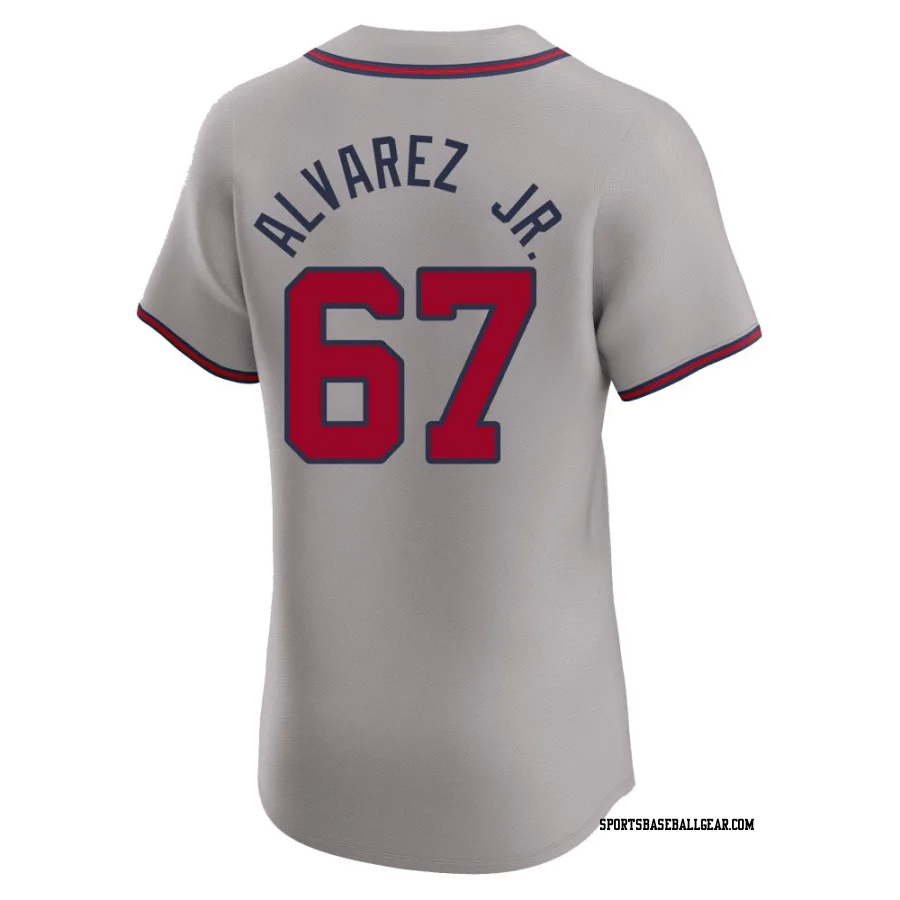 Get the Nacho Alvarez Jr. Men's Atlanta Braves Gray Elite Road Jersey, showcasing the latest design and premium quality for dedicated fans. Elevate your baseball wardrobe now!