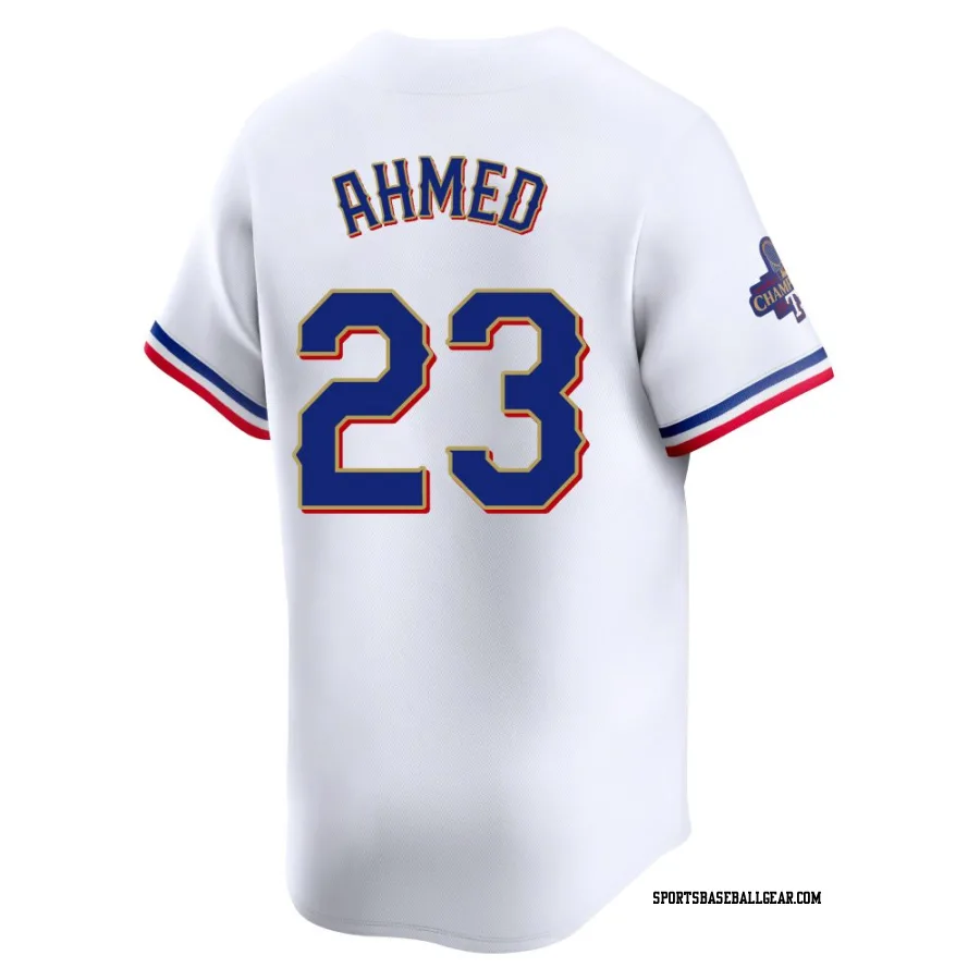 Get the Nick Ahmed Men's Texas Rangers Gold Limited White 2024 Collection Jersey, showcasing the latest design and premium quality for dedicated fans. Elevate your baseball wardrobe now!