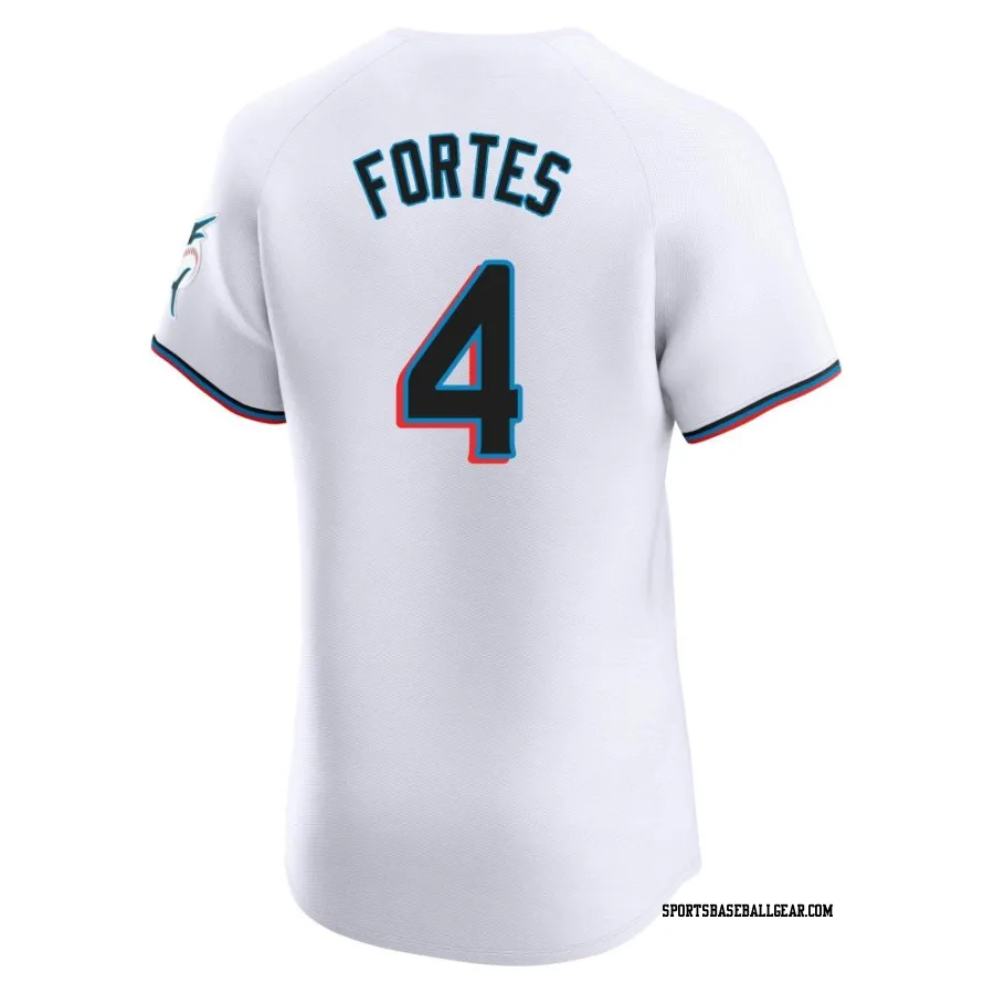 Get the Nick Fortes Men's Miami Marlins White Elite Home Jersey, showcasing the latest design and premium quality for dedicated fans. Elevate your baseball wardrobe now!
