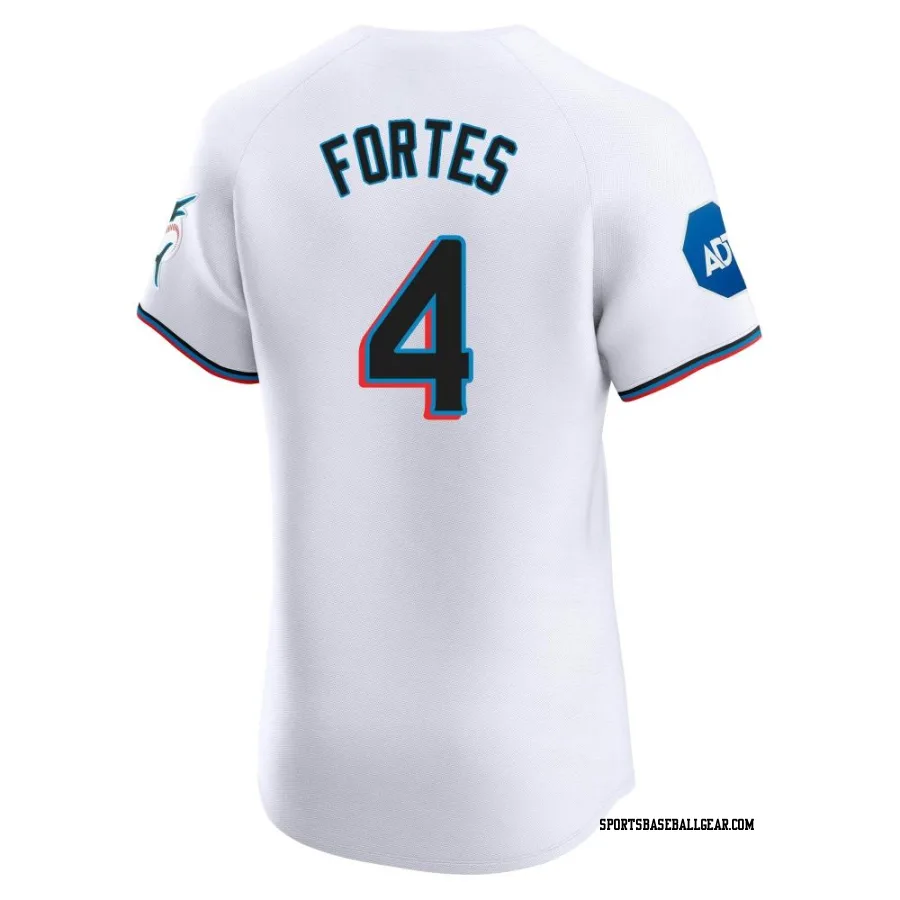 Get the Nick Fortes Men's Miami Marlins White Elite Home Patch Jersey, showcasing the latest design and premium quality for dedicated fans. Elevate your baseball wardrobe now!