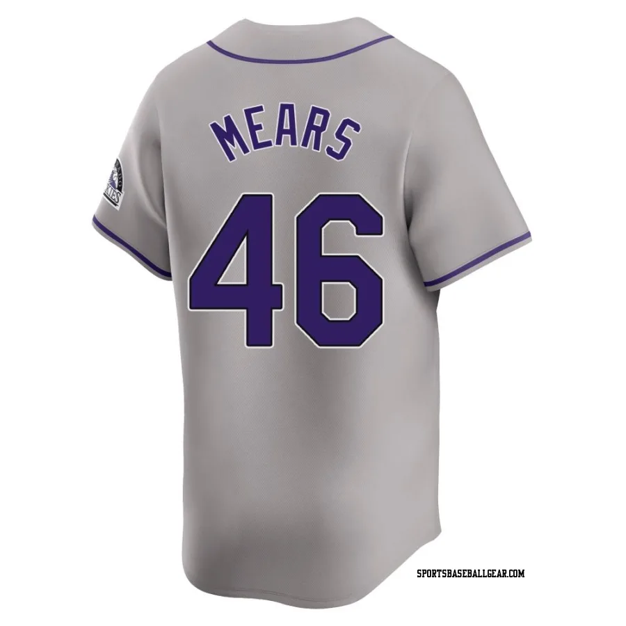 Get the Nick Mears Youth Colorado Rockies Gray Limited Road Jersey, showcasing the latest design and premium quality for dedicated fans. Elevate your baseball wardrobe now!