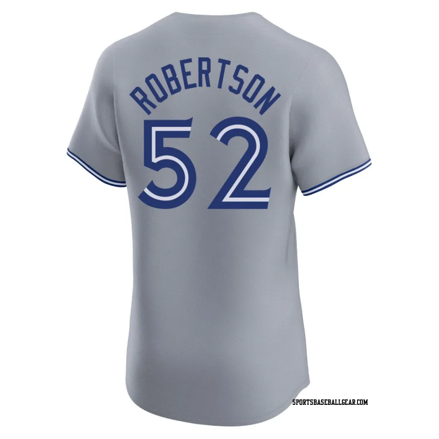 Get the Nick Robertson Men's Toronto Blue Jays Gray Elite Road Jersey, showcasing the latest design and premium quality for dedicated fans. Elevate your baseball wardrobe now!