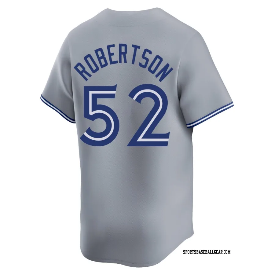 Get the Nick Robertson Youth Toronto Blue Jays Gray Limited Away Jersey, showcasing the latest design and premium quality for dedicated fans. Elevate your baseball wardrobe now!