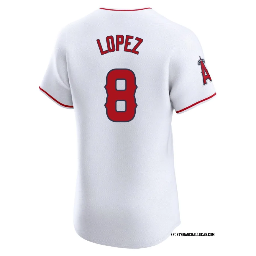 Get the Nicky Lopez Men's Los Angeles Angels White Elite Home Jersey, showcasing the latest design and premium quality for dedicated fans. Elevate your baseball wardrobe now!
