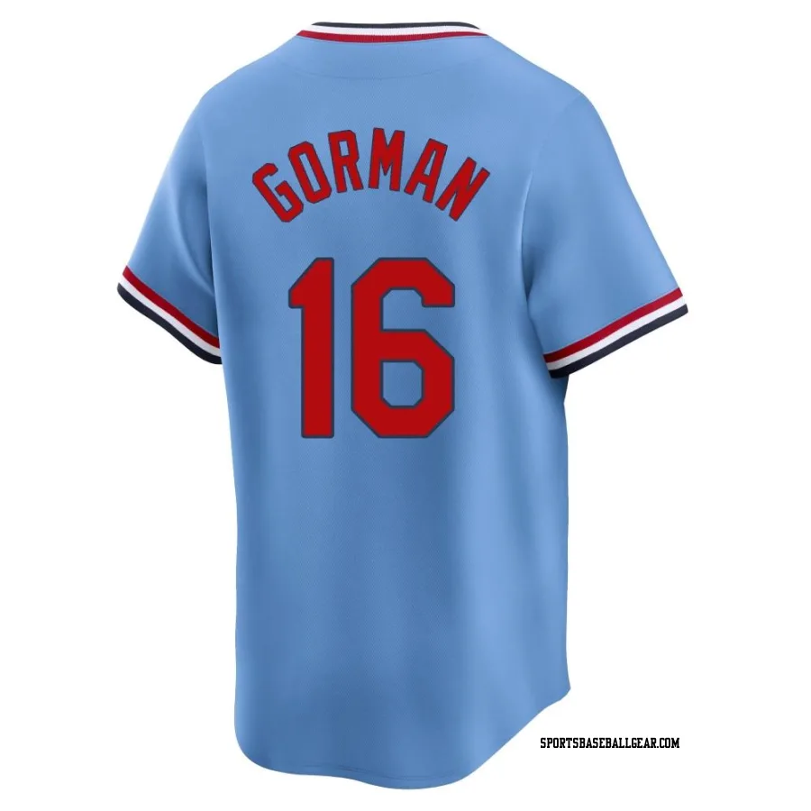 Get the Nolan Gorman Men's St. Louis Cardinals Light Blue Limited Cooperstown Collection Jersey, showcasing the latest design and premium quality for dedicated fans. Elevate your baseball wardrobe now!