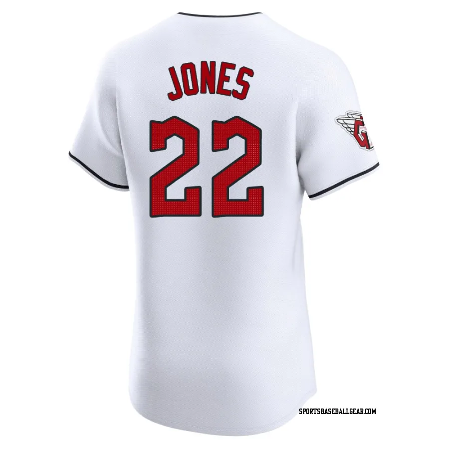 Get the Nolan Jones Men's Cleveland Guardians White Elite Home Jersey, showcasing the latest design and premium quality for dedicated fans. Elevate your baseball wardrobe now!