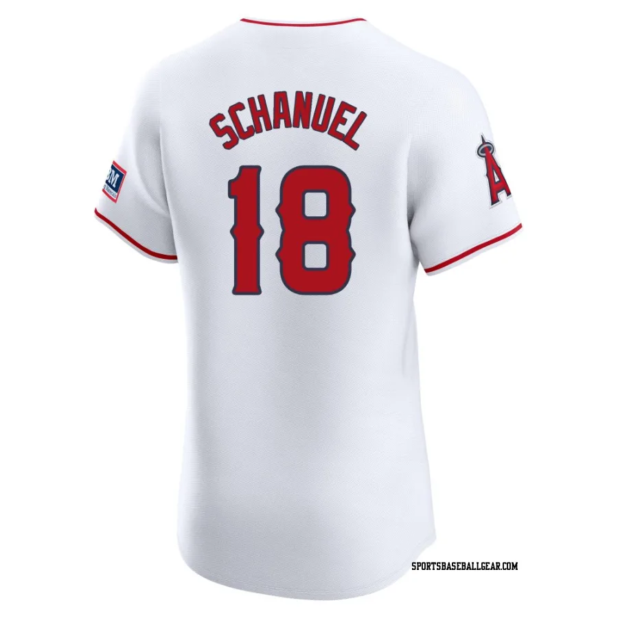 Get the Nolan Schanuel Men's Los Angeles Angels White Elite Home Patch Jersey, showcasing the latest design and premium quality for dedicated fans. Elevate your baseball wardrobe now!