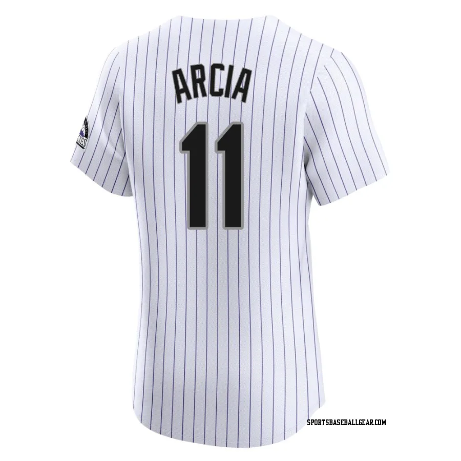 Get the Orlando Arcia Men's Colorado Rockies White Elite Home Jersey, showcasing the latest design and premium quality for dedicated fans. Elevate your baseball wardrobe now!