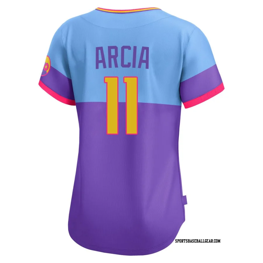 Get the Orlando Arcia Women's Colorado Rockies Purple/Light Limited Blue 2025 City Connect Jersey, showcasing the latest design and premium quality for dedicated fans. Elevate your baseball wardrobe now!