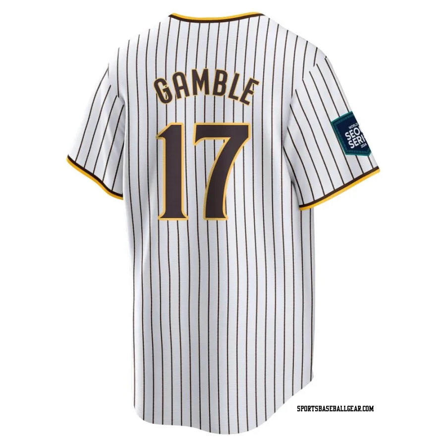 Get the Oscar Gamble Youth San Diego Padres White Replica 2024 World Tour Seoul Series Home Jersey, showcasing the latest design and premium quality for dedicated fans. Elevate your baseball wardrobe now!