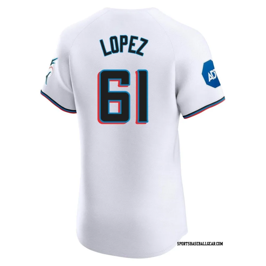 Get the Otto Lopez Men's Miami Marlins White Elite Home Patch Jersey, showcasing the latest design and premium quality for dedicated fans. Elevate your baseball wardrobe now!
