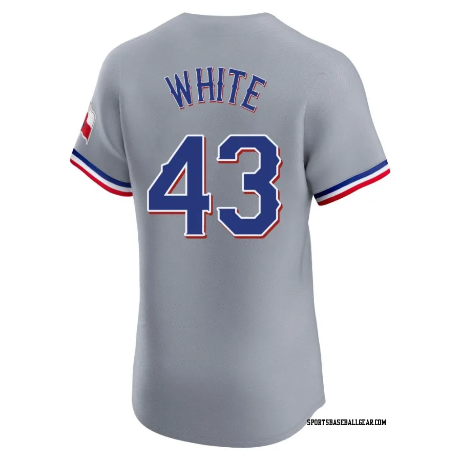 Get the Owen White Men's Texas Rangers Gray Elite Road Jersey, showcasing the latest design and premium quality for dedicated fans. Elevate your baseball wardrobe now!