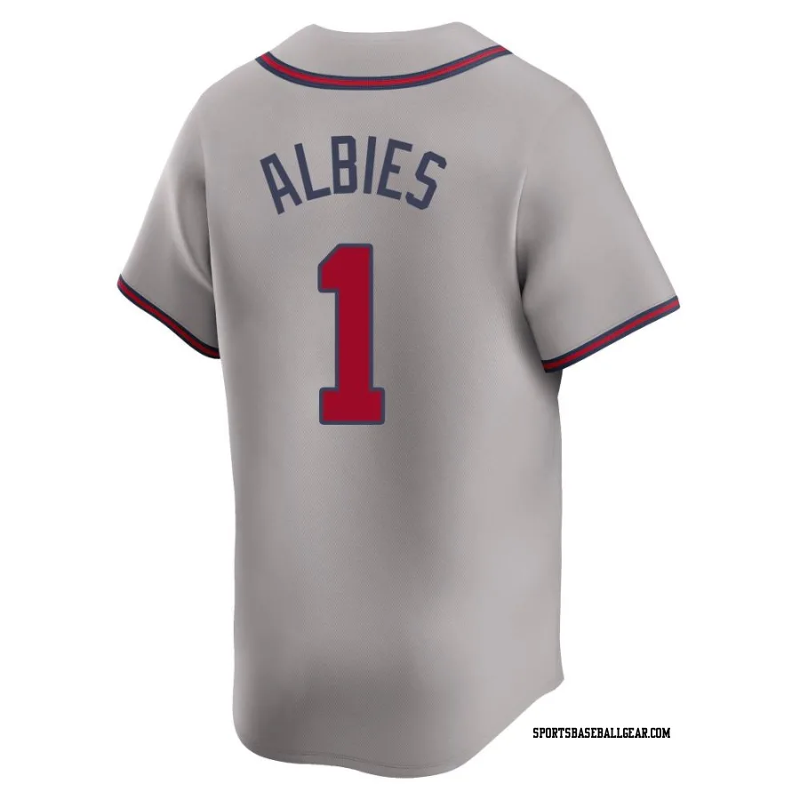 Get the Ozzie Albies Men's Atlanta Braves Gray Limited Away Jersey, showcasing the latest design and premium quality for dedicated fans. Elevate your baseball wardrobe now!