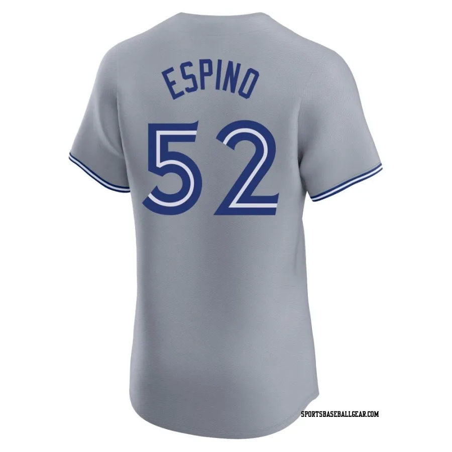Get the Paolo Espino Men's Toronto Blue Jays Gray Elite Road Jersey, showcasing the latest design and premium quality for dedicated fans. Elevate your baseball wardrobe now!