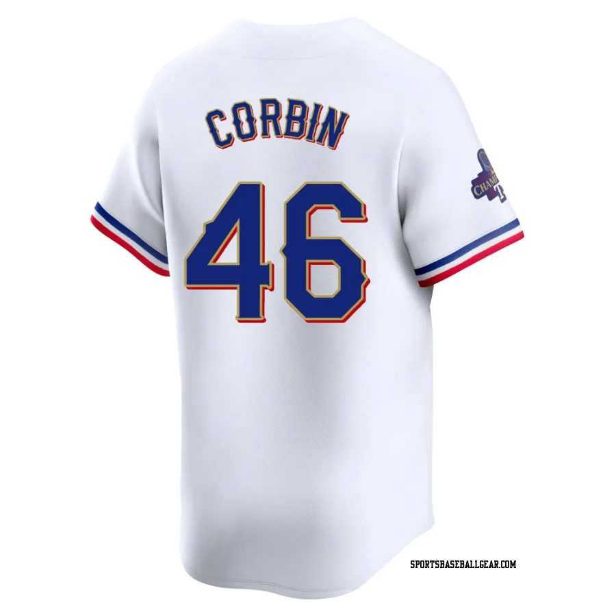 Get the Patrick Corbin Men's Texas Rangers Gold Limited White 2024 Collection Jersey, showcasing the latest design and premium quality for dedicated fans. Elevate your baseball wardrobe now!