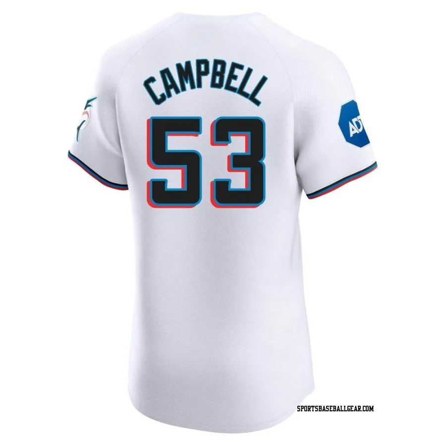 Get the Paul Campbell Men's Miami Marlins White Elite Home Patch Jersey, showcasing the latest design and premium quality for dedicated fans. Elevate your baseball wardrobe now!