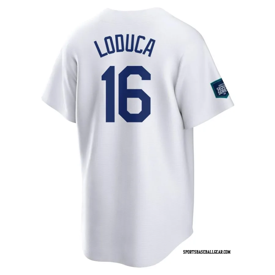 Get the Paul Loduca Men's Los Angeles Dodgers White Replica 2024 World Tour Seoul Series Home Jersey, showcasing the latest design and premium quality for dedicated fans. Elevate your baseball wardrobe now!