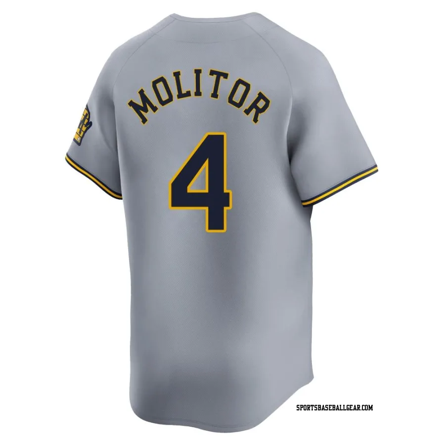 Get the Paul Molitor Youth Milwaukee Brewers Gray Limited Away Jersey, showcasing the latest design and premium quality for dedicated fans. Elevate your baseball wardrobe now!
