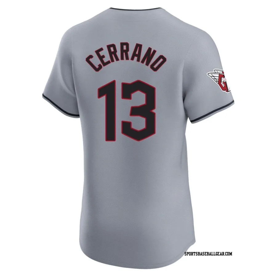 Get the Pedro Cerrano Men's Cleveland Guardians Gray Elite Road Jersey, showcasing the latest design and premium quality for dedicated fans. Elevate your baseball wardrobe now!