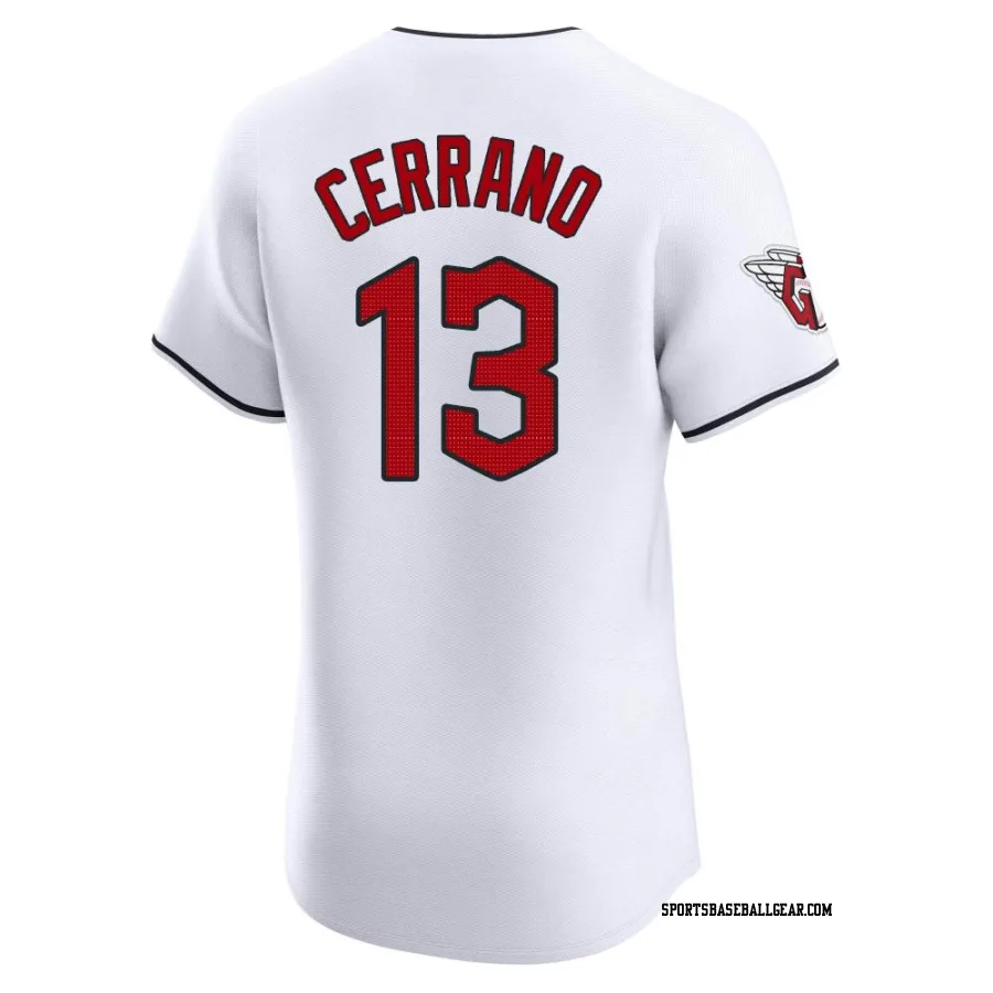 Get the Pedro Cerrano Men's Cleveland Guardians White Elite Home Jersey, showcasing the latest design and premium quality for dedicated fans. Elevate your baseball wardrobe now!