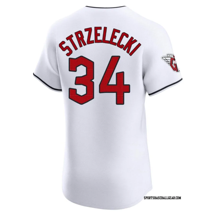 Get the Peter Strzelecki Men's Cleveland Guardians White Elite Home Jersey, showcasing the latest design and premium quality for dedicated fans. Elevate your baseball wardrobe now!