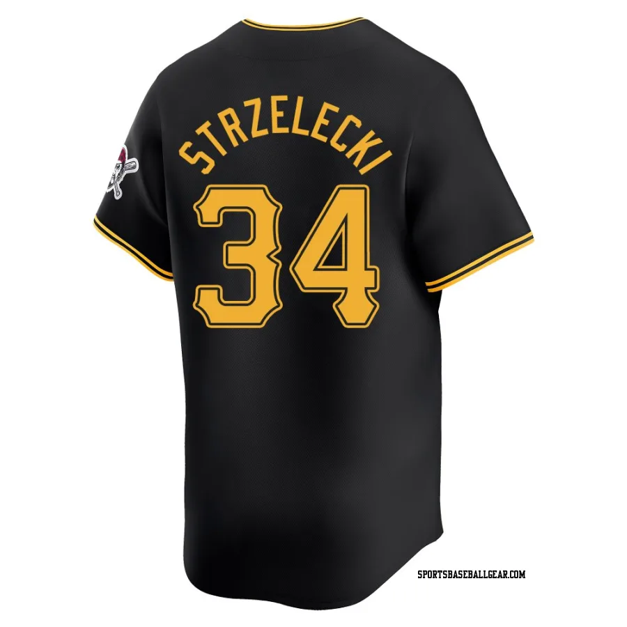 Get the Peter Strzelecki Men's Pittsburgh Pirates Black Limited Alternate Jersey, showcasing the latest design and premium quality for dedicated fans. Elevate your baseball wardrobe now!