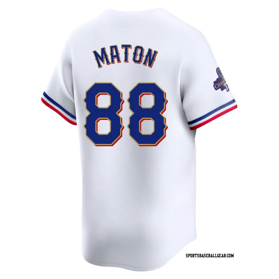 Get the Phil Maton Men's Texas Rangers Gold Limited White 2024 Collection Jersey, showcasing the latest design and premium quality for dedicated fans. Elevate your baseball wardrobe now!