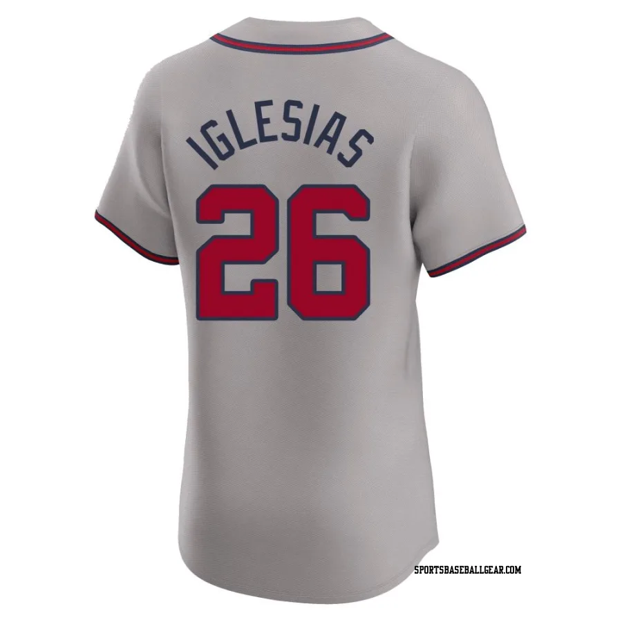 Get the Raisel Iglesias Men's Atlanta Braves Gray Elite Road Jersey, showcasing the latest design and premium quality for dedicated fans. Elevate your baseball wardrobe now!
