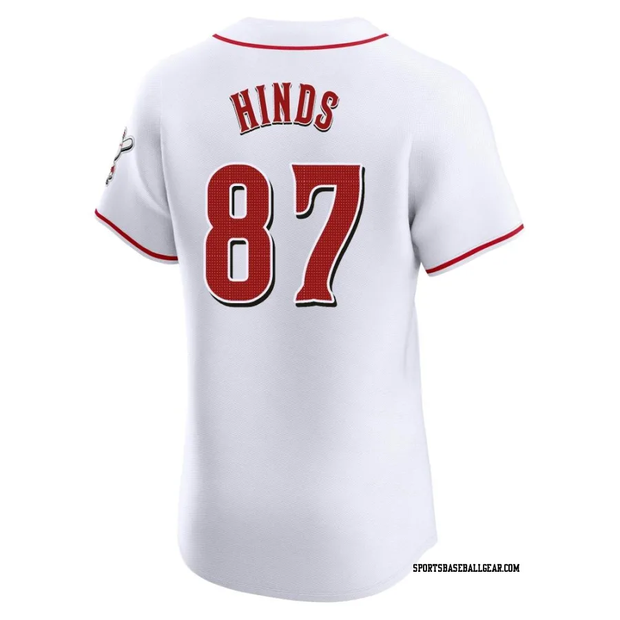 Get the Rece Hinds Men's Cincinnati Reds White Elite Home Jersey, showcasing the latest design and premium quality for dedicated fans. Elevate your baseball wardrobe now!