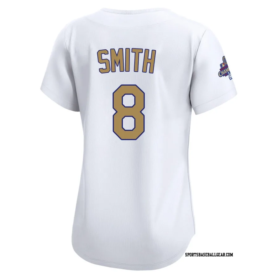 Get the Reggie Smith Women's Los Angeles Dodgers Gold Limited White 2025 Collection Jersey, showcasing the latest design and premium quality for dedicated fans. Elevate your baseball wardrobe now!