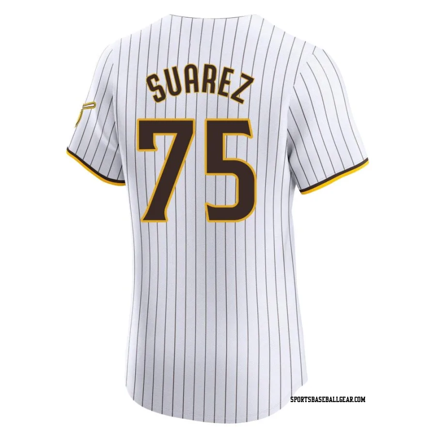 Get the Robert Suarez Men's San Diego Padres White Elite Home Jersey, showcasing the latest design and premium quality for dedicated fans. Elevate your baseball wardrobe now!