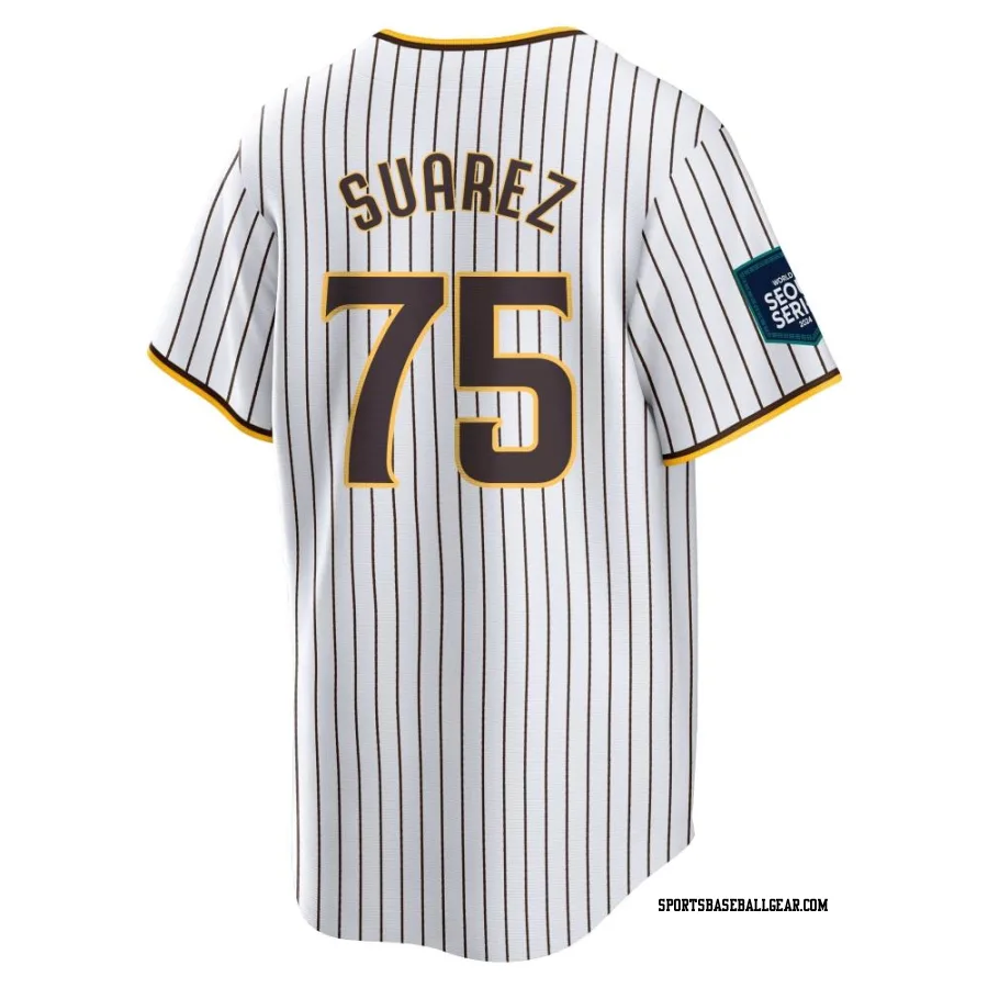 Robert Suarez Youth San Diego Padres White Replica 2024 World Tour Seoul Series Home Jersey